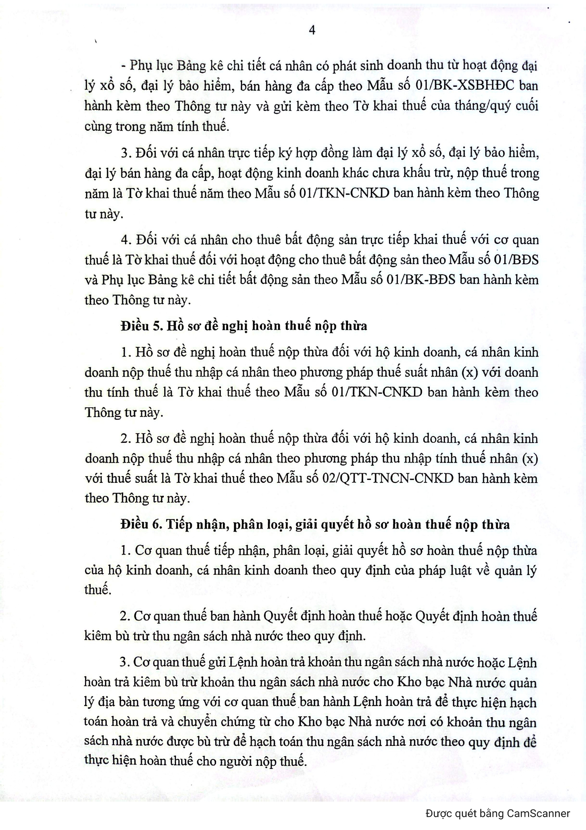 Đối với hộ kinh doanh, cá nhân kinh doanh thuộc đối tượng nộp thuế thu nhập cá nhân theo phương pháp thuế suất nhân (x) với doanh thu tính thuế, hồ sơ khai thuế giá trị gia tăng, thuế thu nhập cá nhân và các loại thuế khác là tờ khai theo Mẫu số 01/CNKD ban hành kèm theo thông tư này.